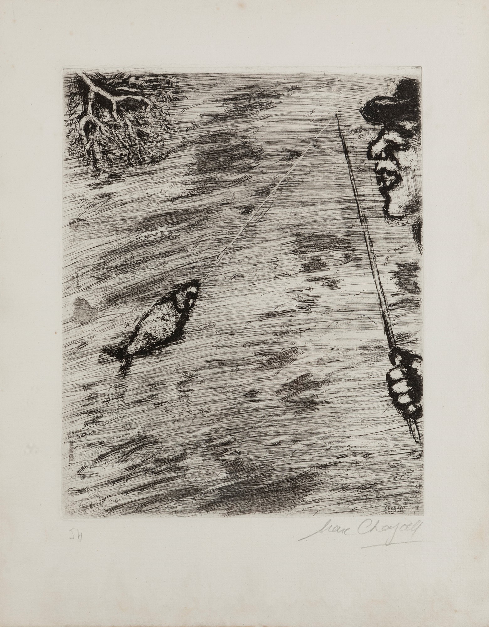 Marc Chagall (Lezna 1887-Saint Paul de Vence 1985) - Il pesciolino e il pescatore