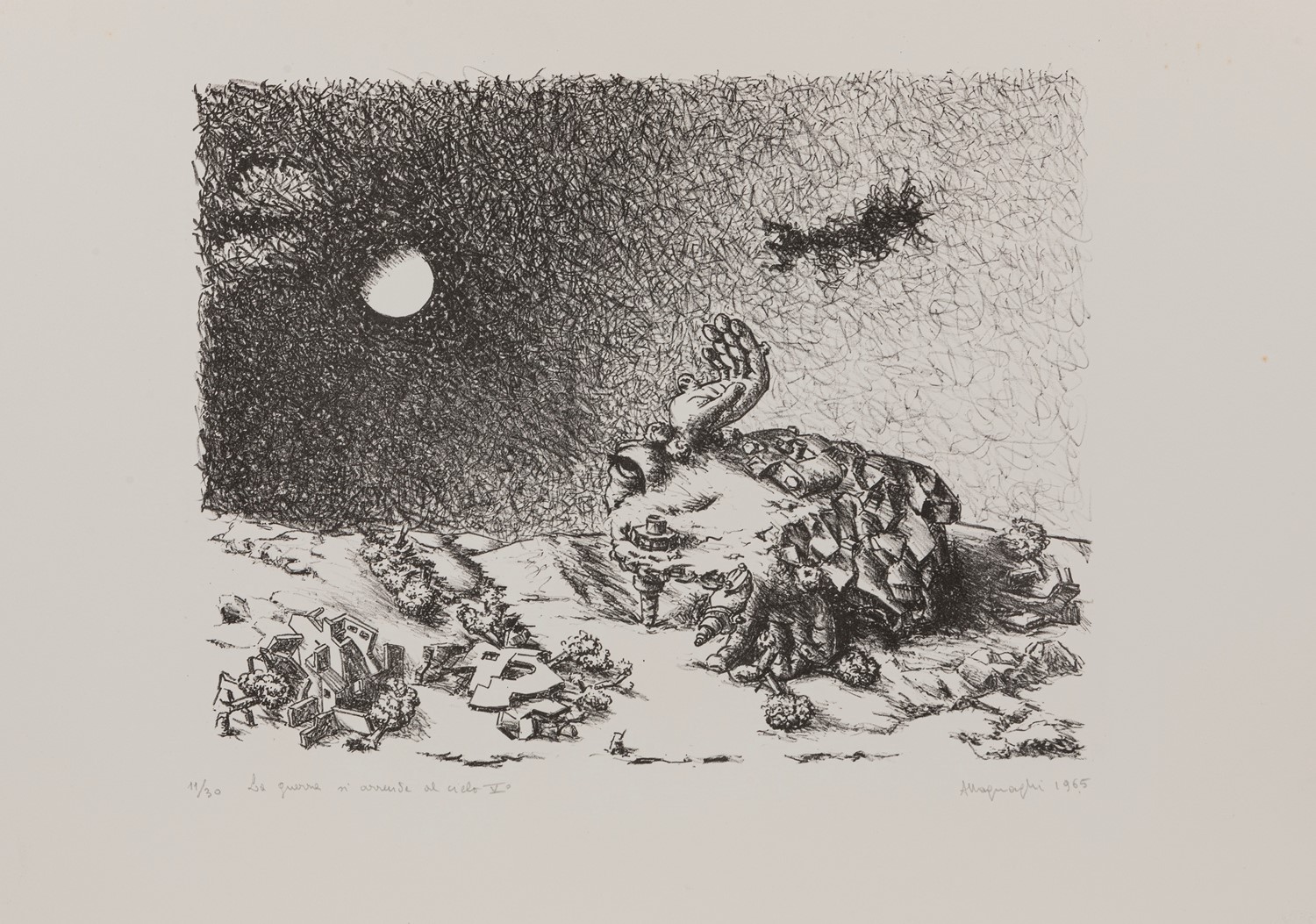 c) La guerra si arrende al cielo V, litografia es. 11/30