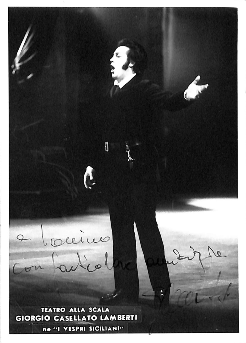 Fotografia con firma autografa delcelebre tenore ne I Vespri Siciliani al teatro La Scala di Milano.