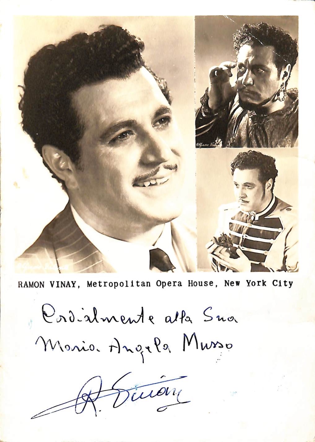 Ricordato come il più famoso Otello verdiano del secondo dopoguerra insieme a Mario Del Monaco, ebbe in repertorio anche altri importanti ruoli, in particolare del melodramma italiano e wagneriano. Ritratto autografo del celebre tenore cileno raffigurato in abito civile e in due costumi di scena, con dedica autografa.