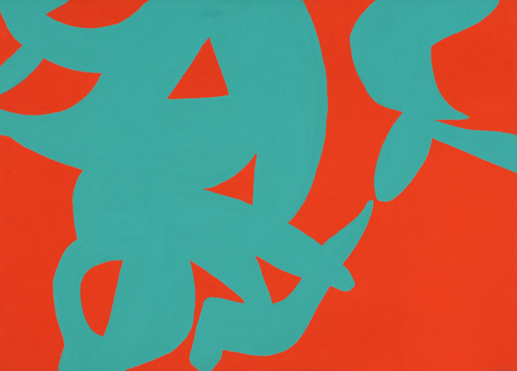 Carla Accardi Verde su rosso Vinilico su tela, cm. 50x70 Sul pianetto: firma, data, titolo e Archivio n° 76C. Autentica dell'Artista su foto con Archivio n° 76C e timbro dello Studio Accardi con Certificato n° 10/09.