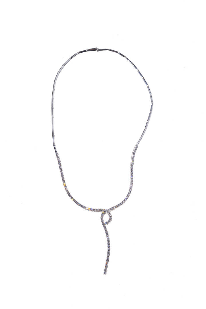 Girocollo in oro bianco, punzonato "Crivelli", composto da segmenti rigidi, al centro intreccio in diamanti taglio brillante per totali ct 2,97 ca, probabile colore G, purezza IF-VVS