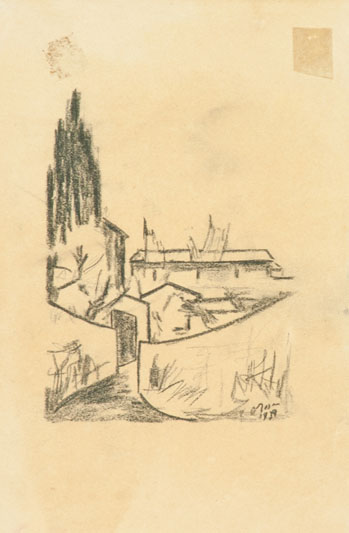 Ottone Rosai Paesaggio, 1939 Carboncino su carta, cm. 27x18 La carta presenta...