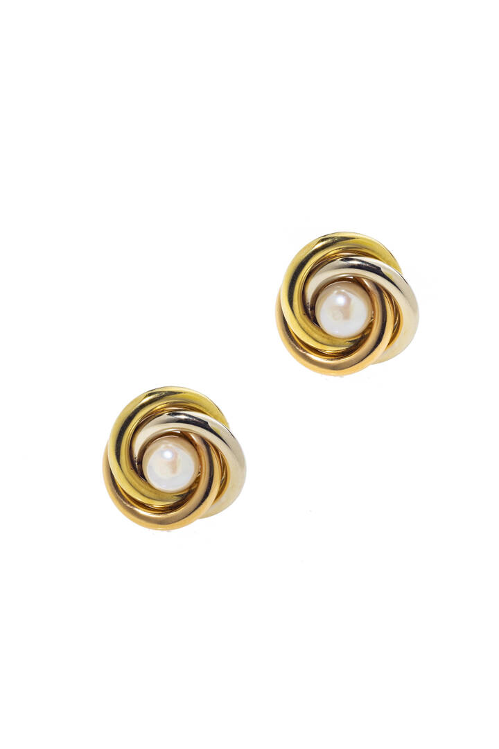 nei tre colori dell'oro, lavorati ad intreccio, al centro due perle giapponesi del diam di 7,5 ca