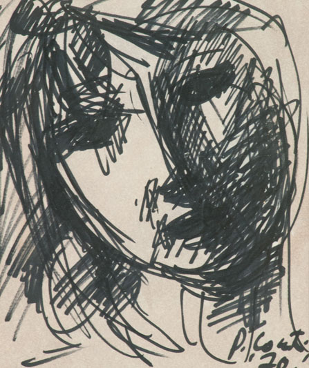 Primo Conti Volto, 1970 Pennarelli su carta, cm. 23x20 Firma e data in basso a destra.
