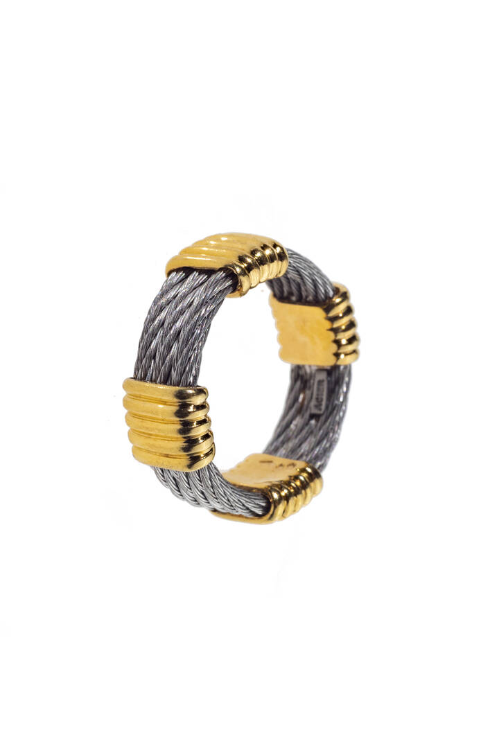 Chevalier in acciaio ed oro giallo, firmato "Fred Paris", lavorato a corda