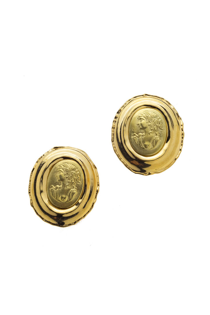in oro giallo lucido e satinato, di forma ovale, con al centro due ritratti femminili