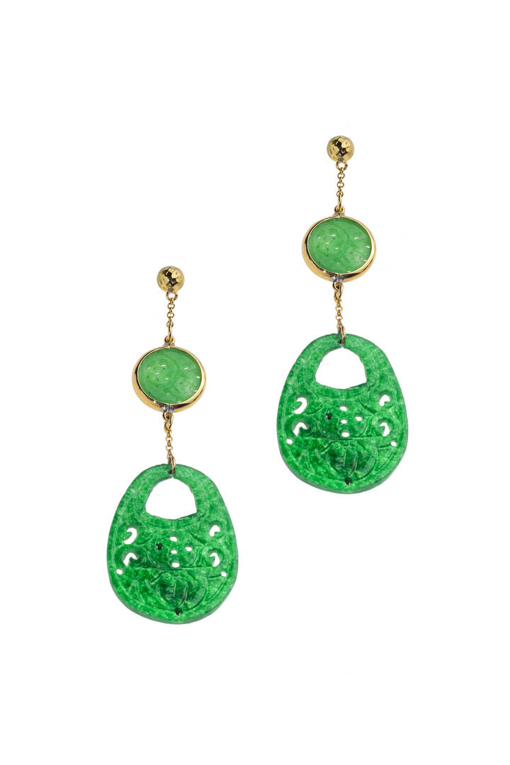 pendenti in oro giallo con dischi traforati in giada