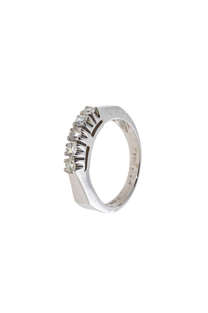 in oro bianco con cinque diamanti taglio brillante per totali ct 0,35 ca, probabile colore G-H, purezza IF-VVS