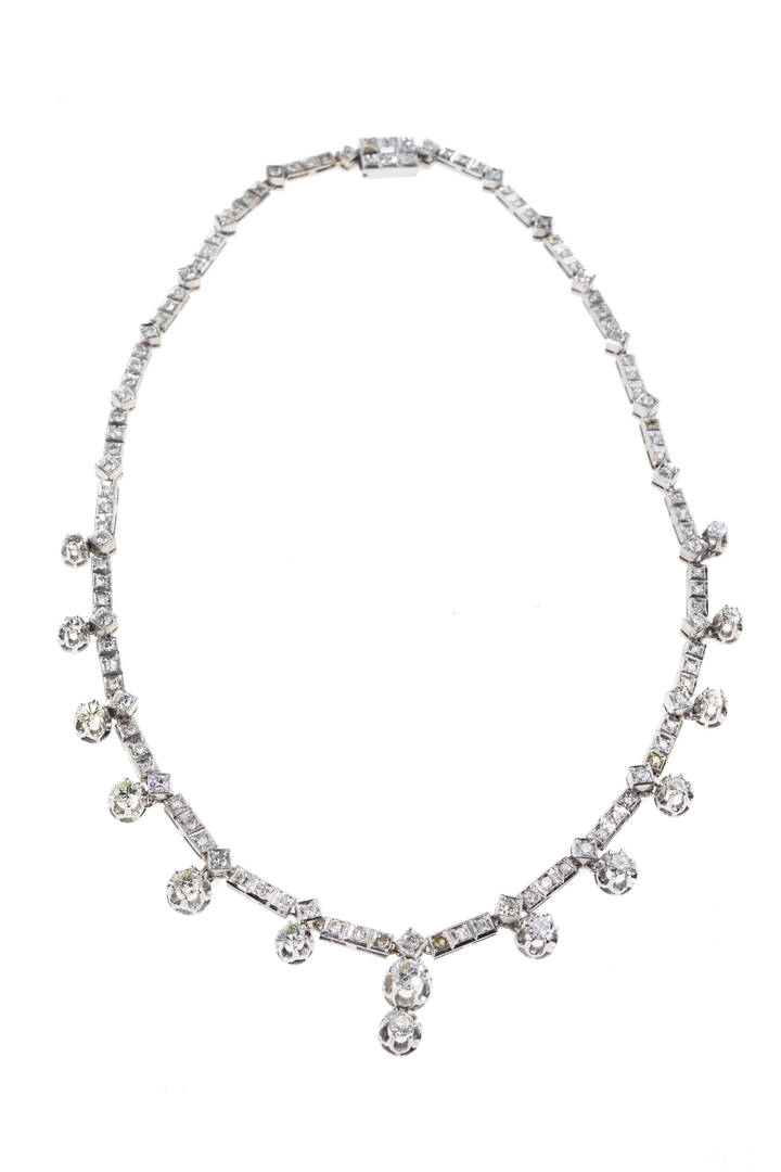 in oro bianco, con diamanti taglio brillante, di vecchio taglio, 16/16 e 8/8 per totali ct 5 ca