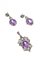 in oro giallo a bassa caratura ed argento composta da coppia di orecchini pendenti, a vite, e ciondolo con ametiste sintetiche taglio ovale. Rosette a decoro (cinque mancanti nel ciondolo)