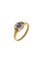 in oro giallo, sommità con zaffiro ovale e carré per totali ct 0,45 ca e a contorno diamantini taglio brillante per totali ct 0,15 ca