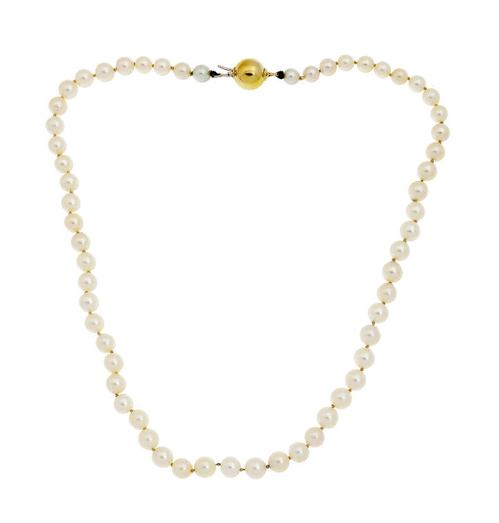 composto da un filo di perle giapponesi del diam di mm 6, Chiusura in oro giallo a sfera