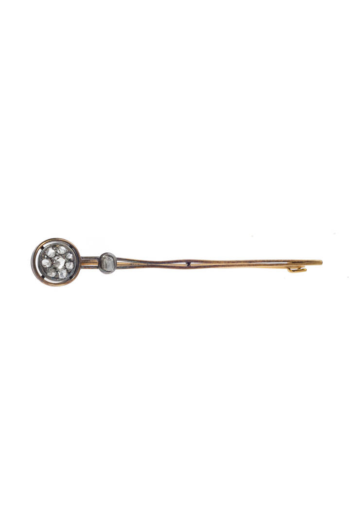 in oro rosa a bassa caratura ed argento, a barretta, con piccole rosette di diamanti per totali ct 0,10 ca