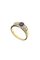 in oro giallo, al centro zaffiro taglio ovale (abrasione di un lato) di ct 0,60 ca, ai lati diamanti taglio brillante per totali ct 0,25 ca