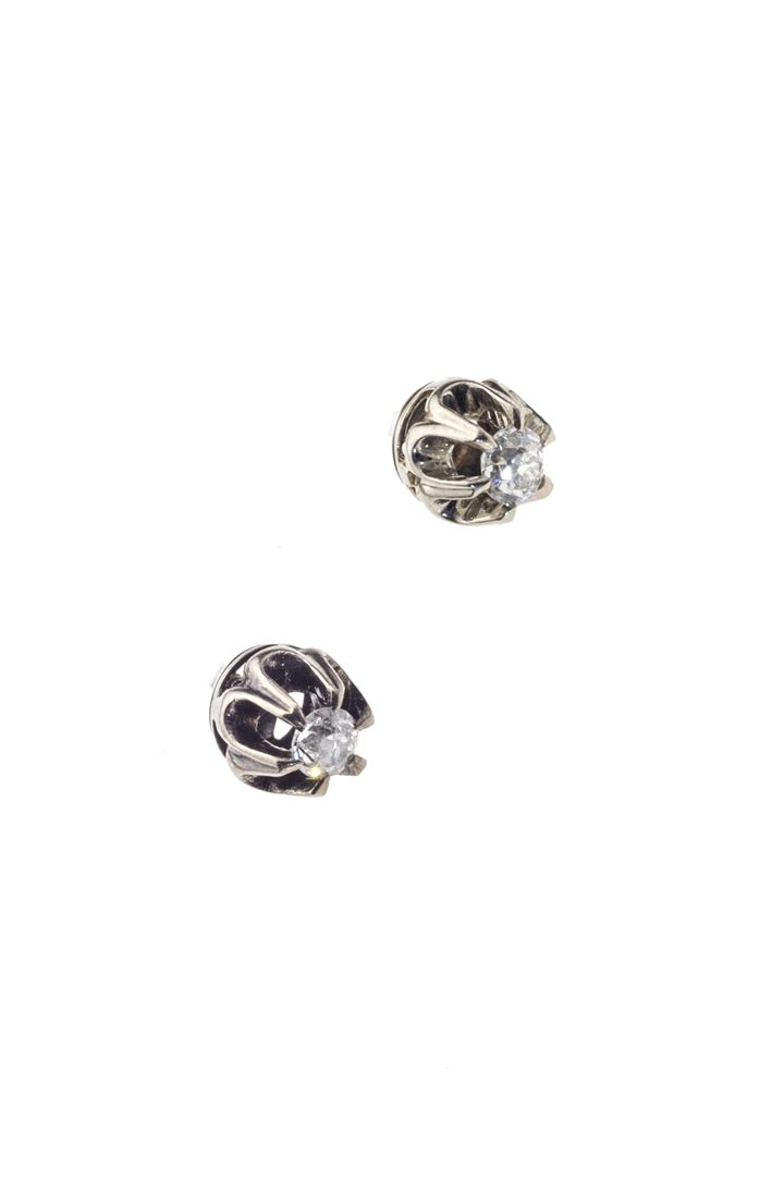 in oro bianco, a vite, con due diamantini taglio brillante di vecchio taglio per totali ct 0,20 ca