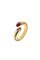 Anello in oro giallo, firmato "Cartier", modello contrarié con due granati taglio ovale per totali ct 0,40 ca