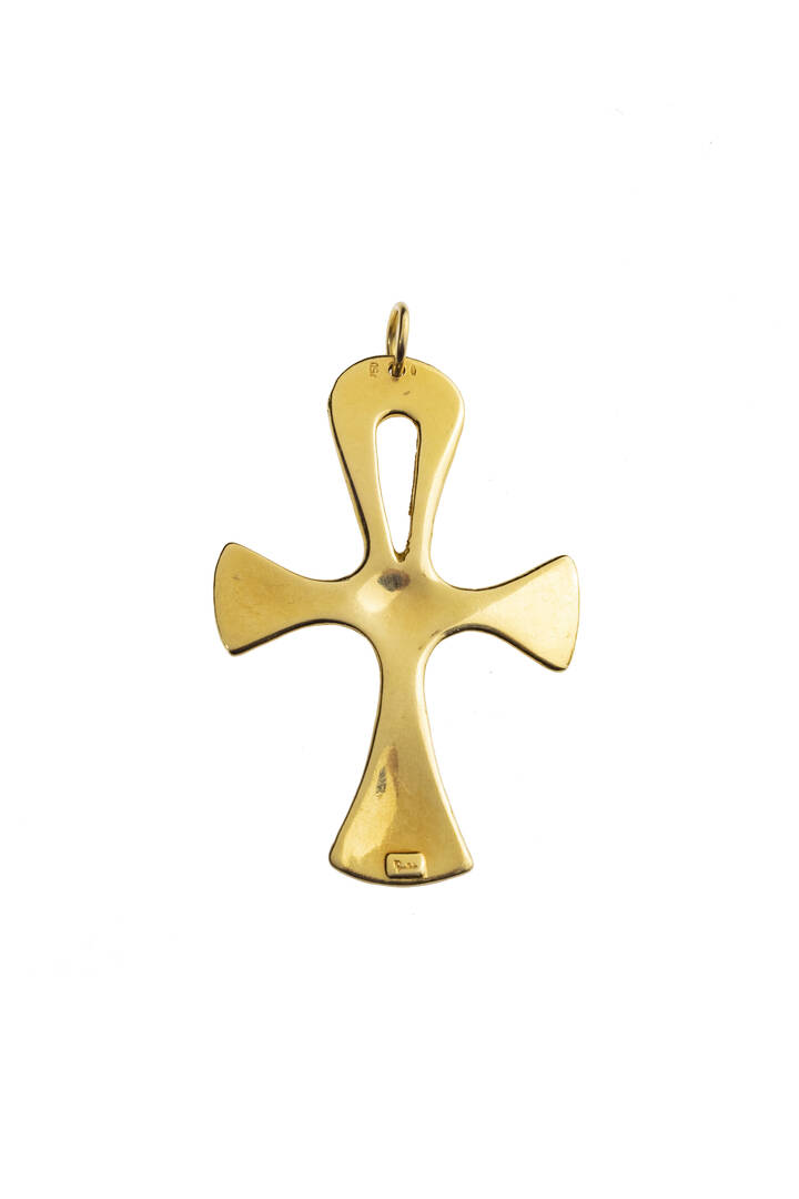 Croce a forma di "Ank" in oro giallo lucido e satinato, firmata "Pomellato"