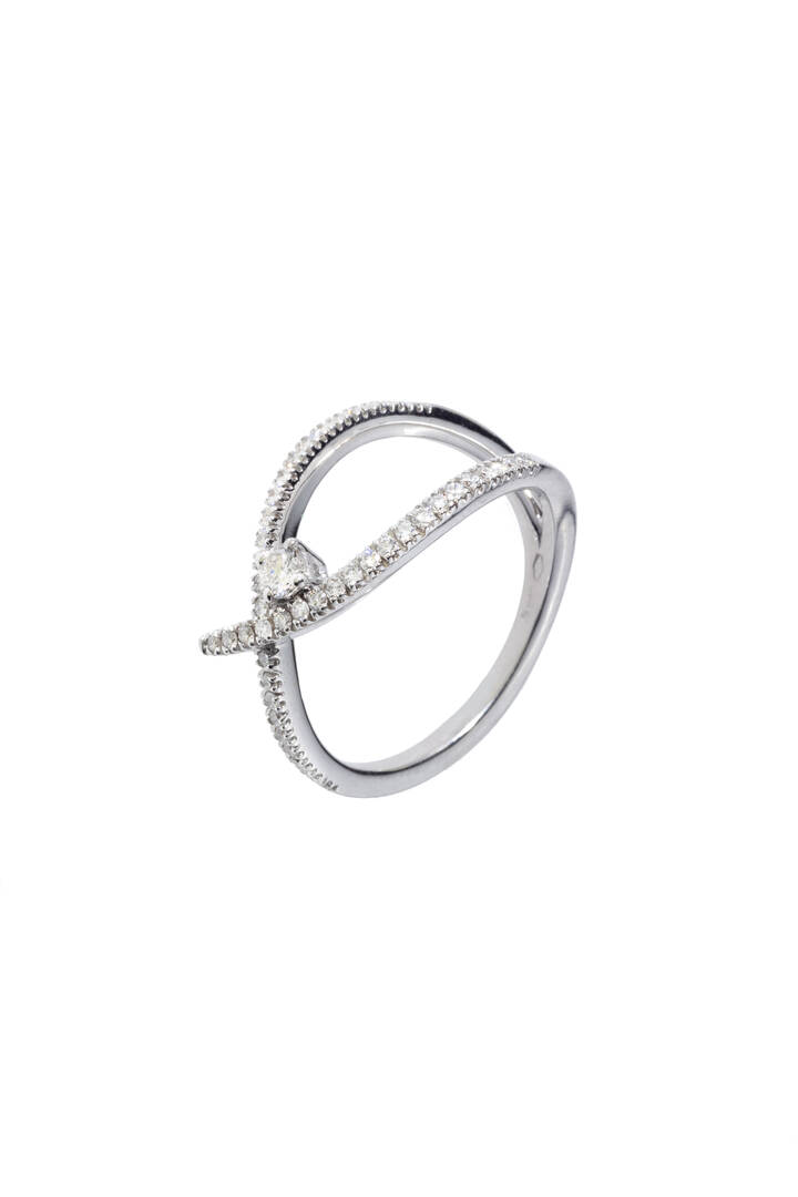 in oro bianco, sommità ad intreccio con diamanti taglio brillante per totali ct 0,36 ca, probabile colore G-H, purezza IF-VVS
