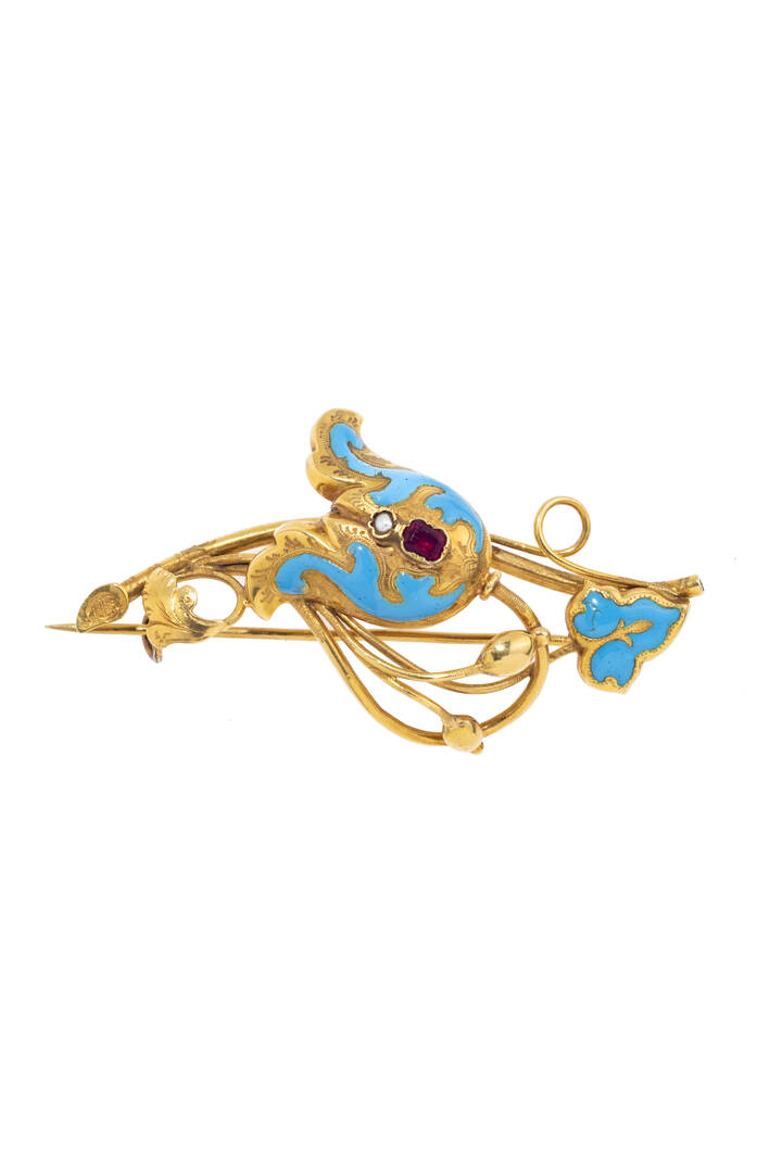 XIX secolo, in oro giallo, a forma di tulipano, con smalto color turchese