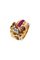 in oro rosa, anni '40, con sommità a conchiglia con diamanti taglio brillante per totali ct 0,20 ca e rubini taglio baguette sintetici