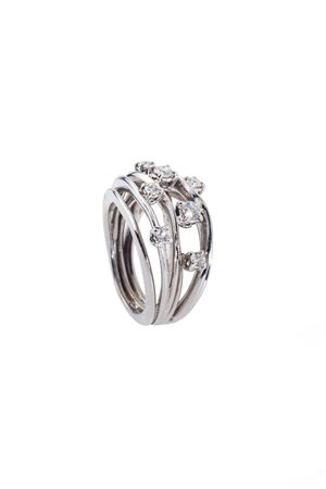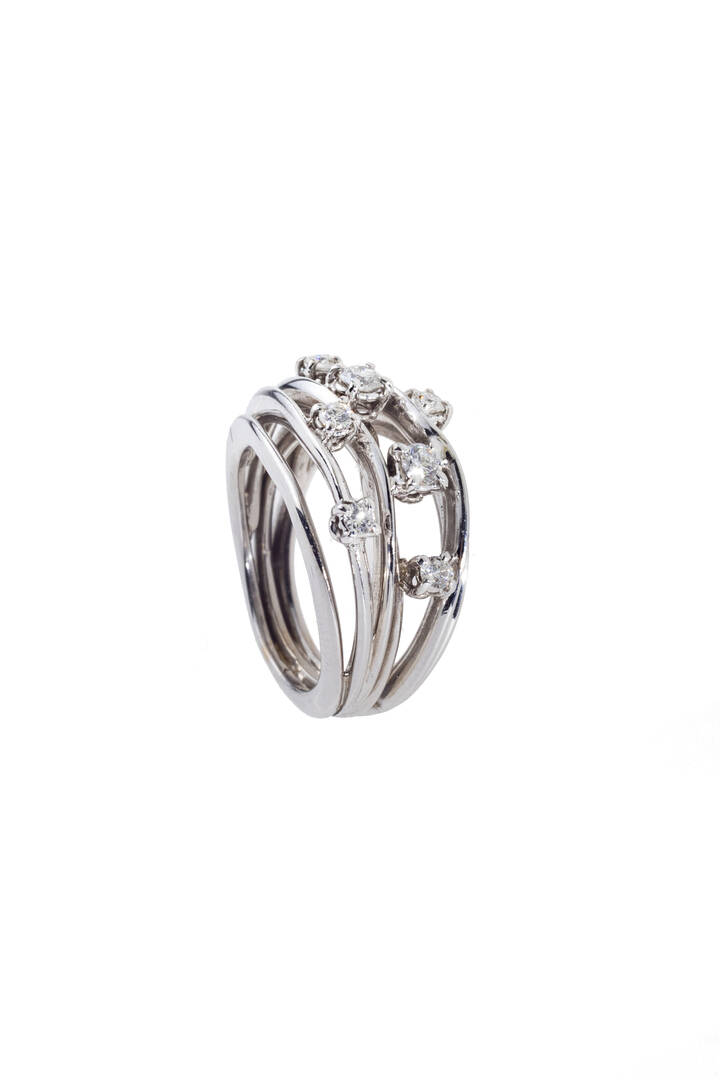 in oro bianco, sommità composta da cinque fili, impreziositi da diamanti taglio brillante per totali ct 0,30 ca