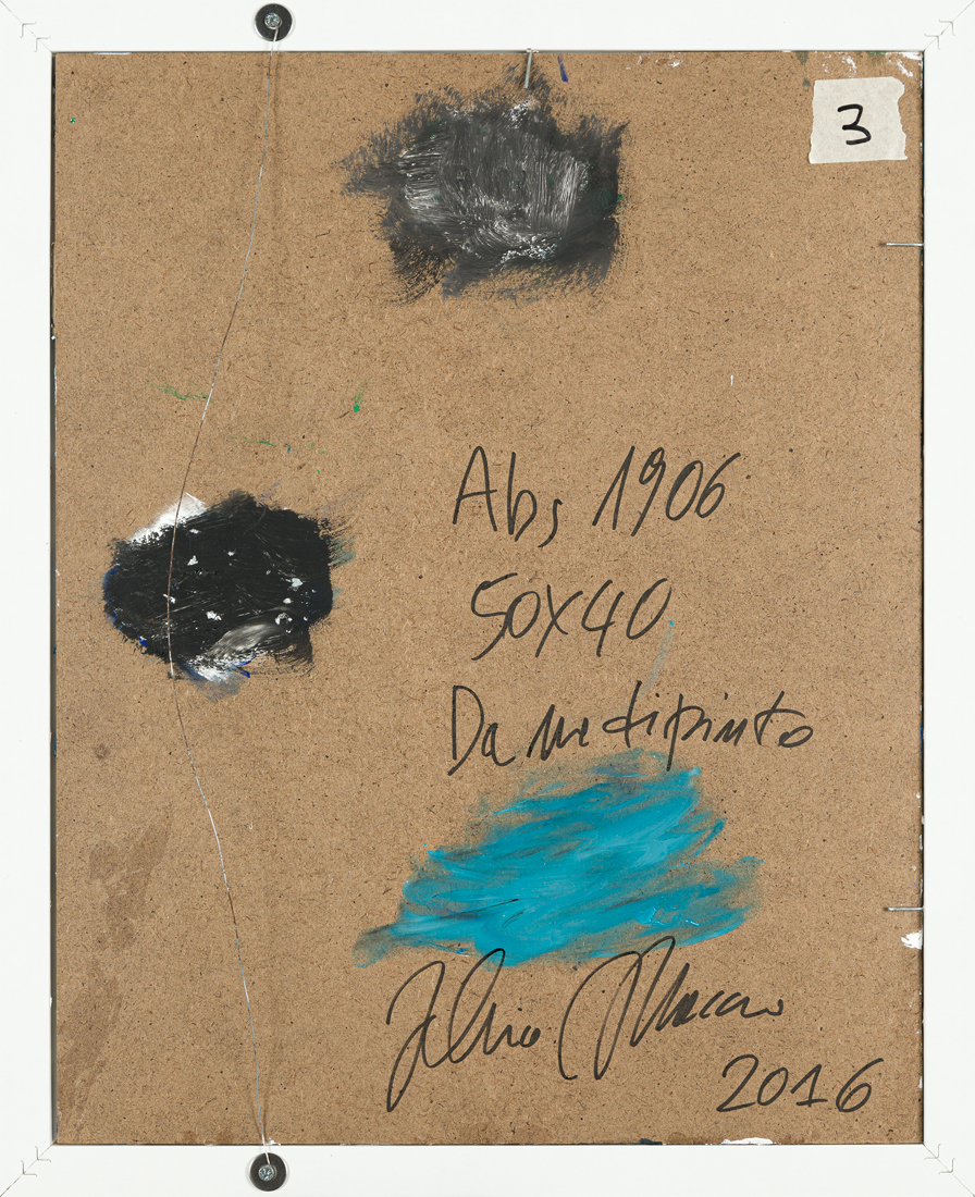 Firma, datazione, misure e dichiarazione di autenticità dell'Artista al retro