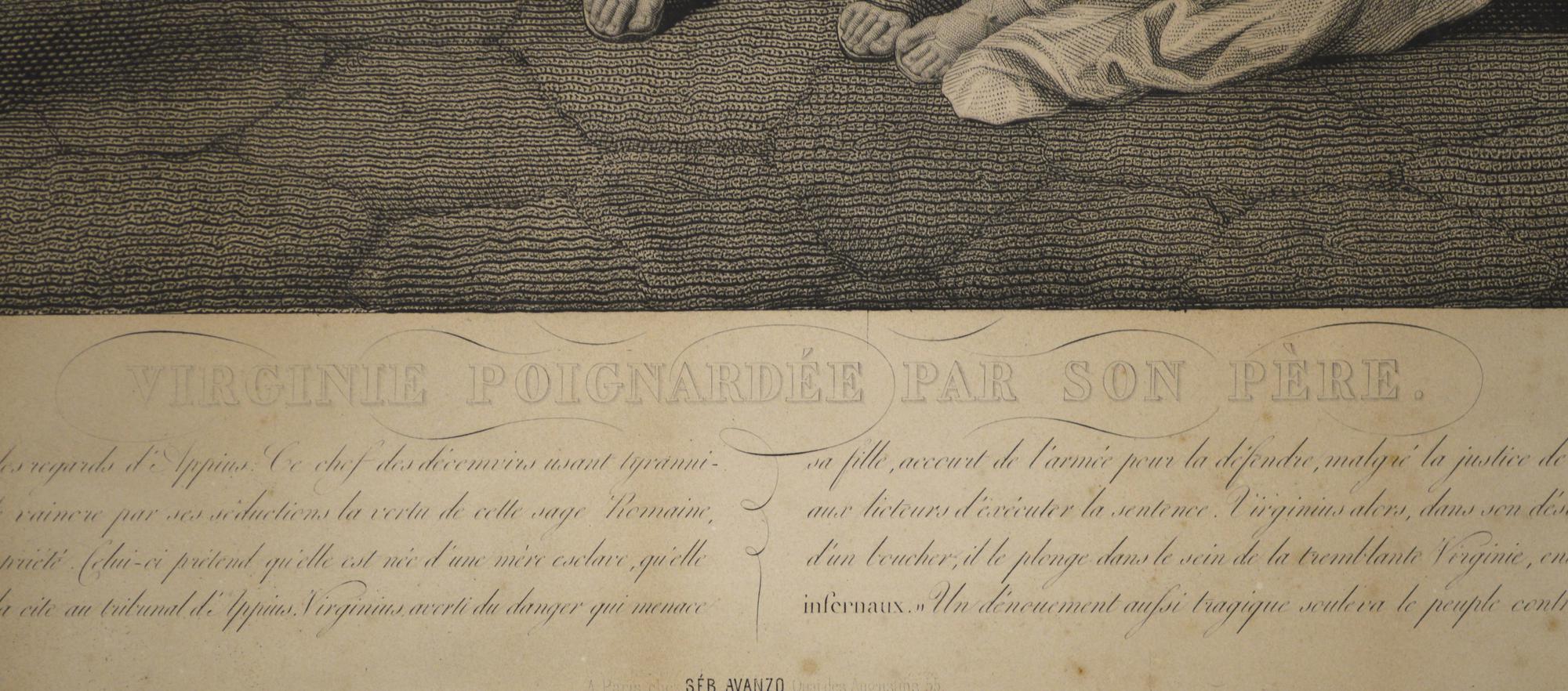Scuola del XIX secolo LA MORTE DI VIRGINIA litografia, cm 42x58,5; foglio cm...