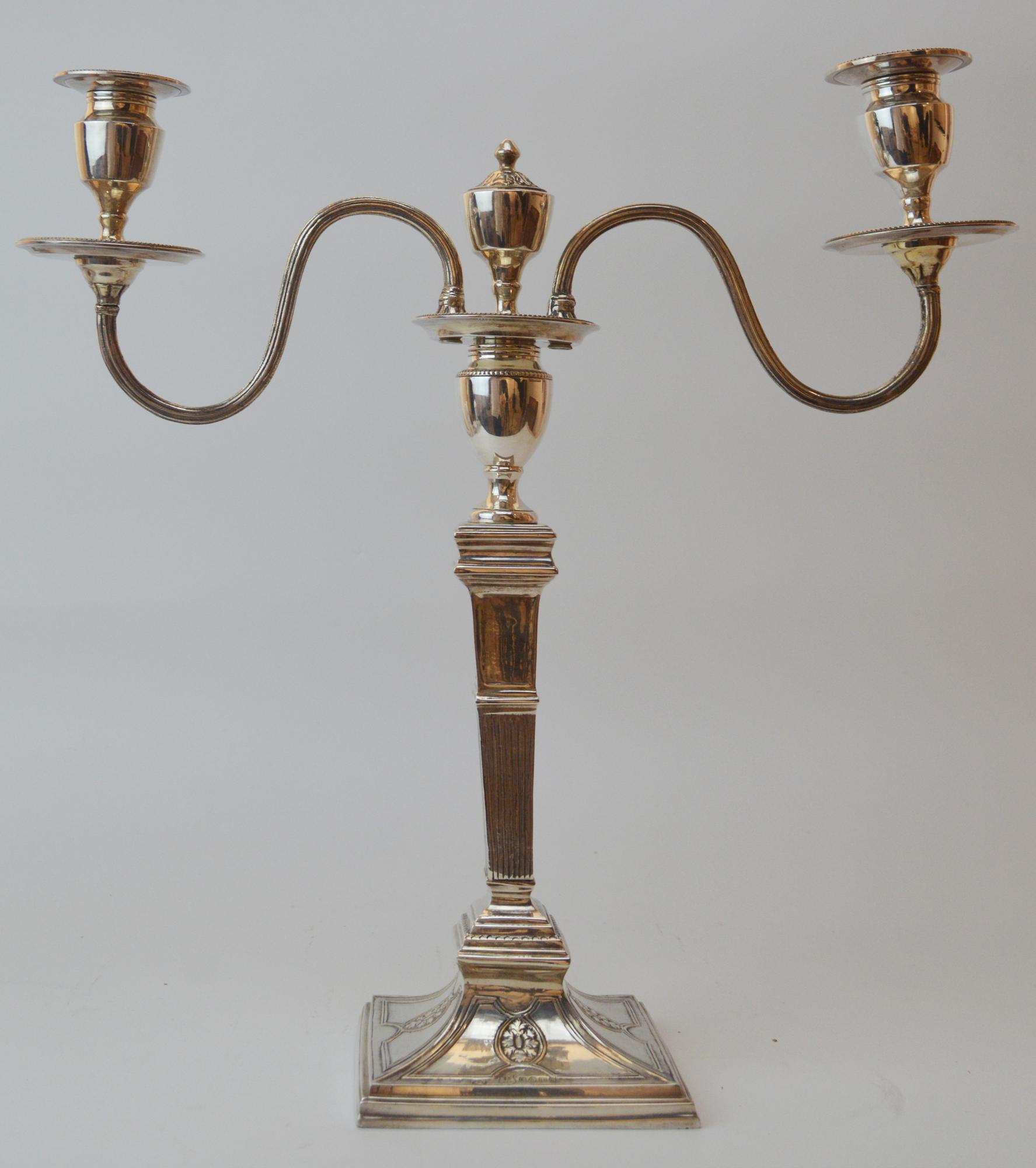 CANDELIERE IN METALLO ARGENTATO A DUE FUOCHI