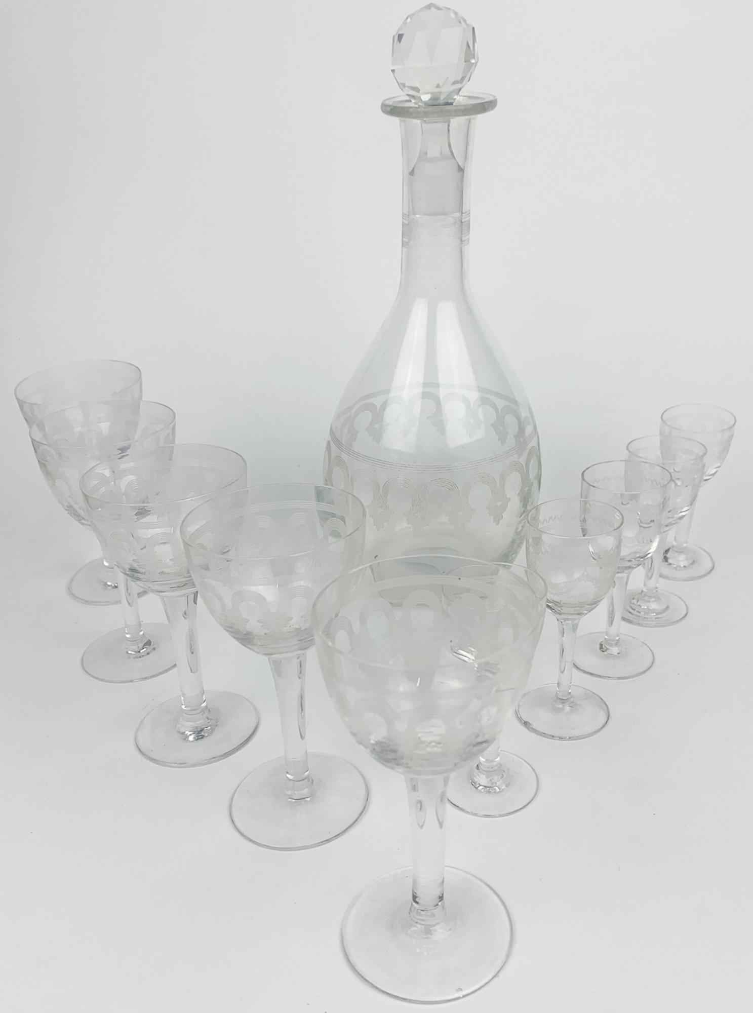 LOTTO COMPOSTO DA UNA BOTTIGLIA CON TAPPO, 5 BICCHIERI DA CHERRY E 5 BICCHIERINI