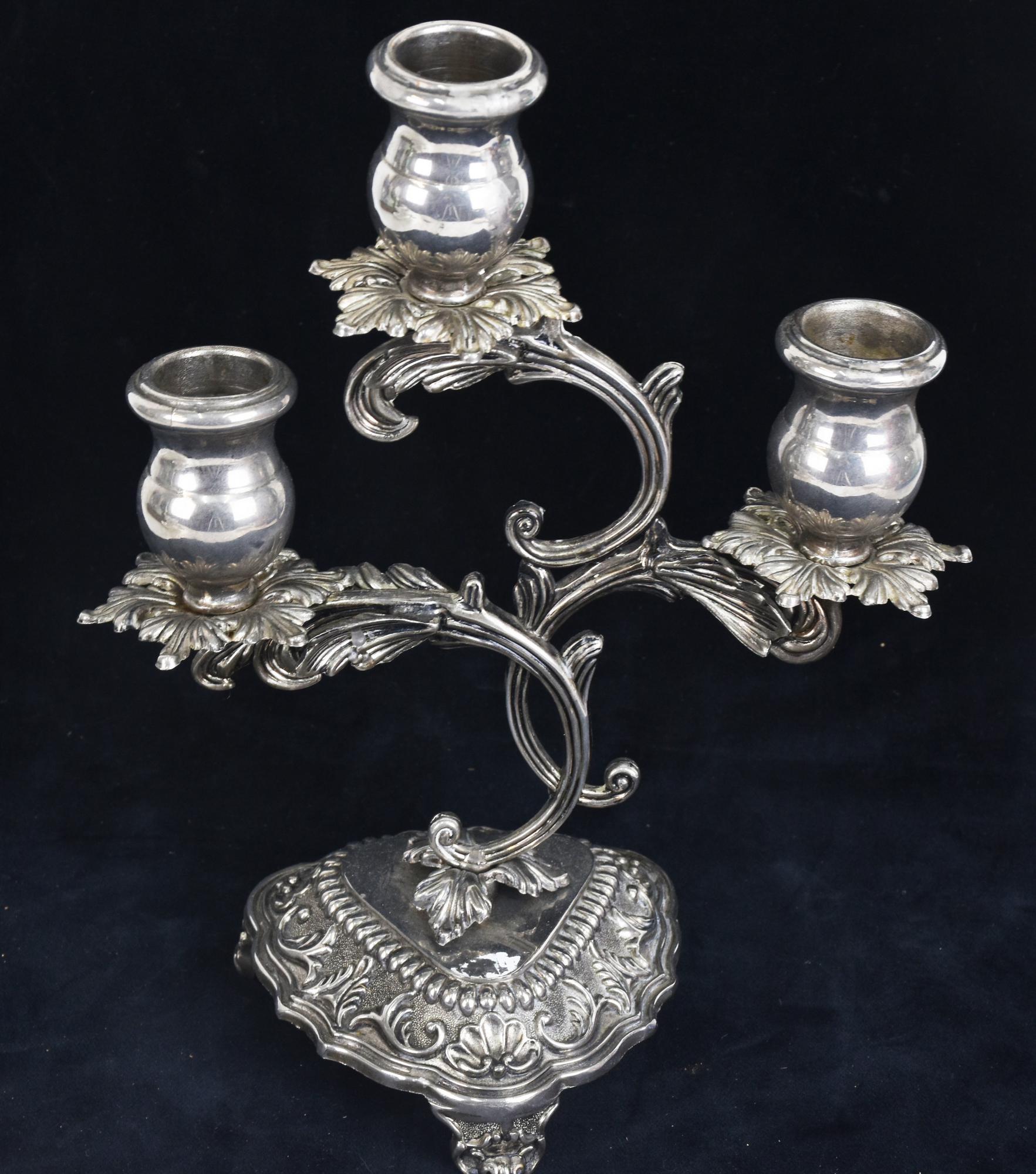 CANDELIERE IN METALLO ARGENTATO a tre fiamme Italia, anni '50 h 23 cm