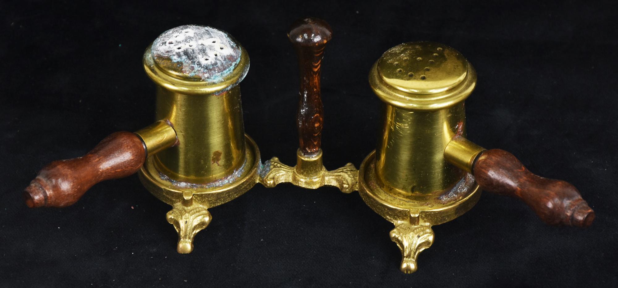 SALE E PEPE IN OTTONE con manici in legno 8x20 cm Lievi difetti