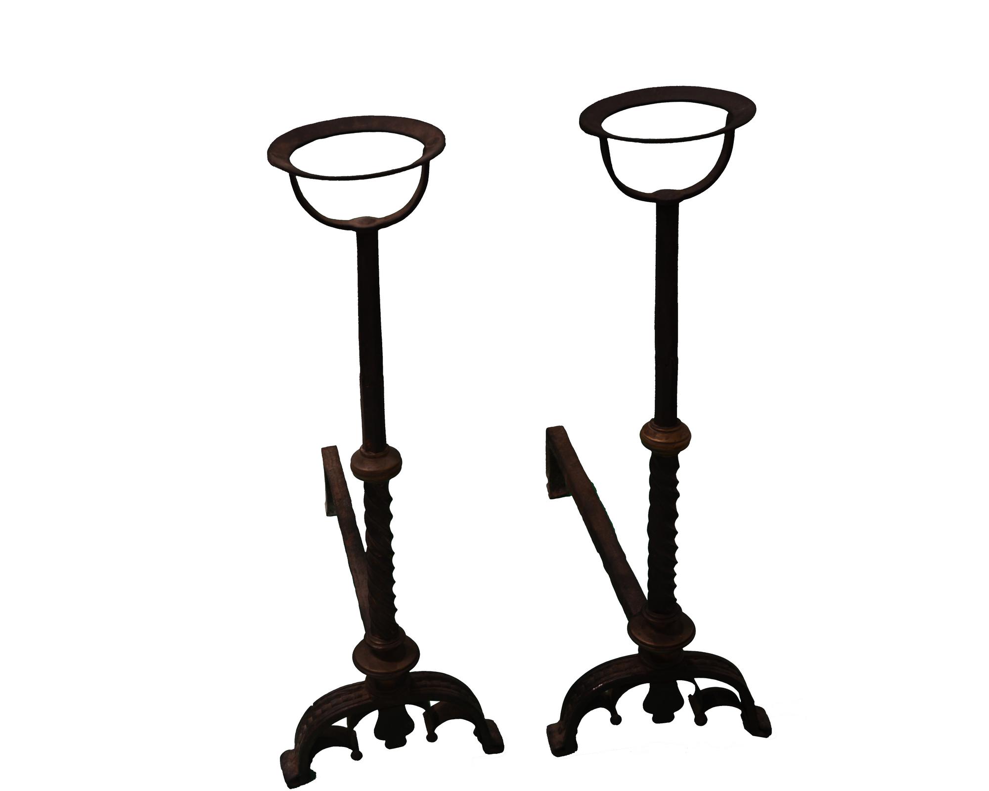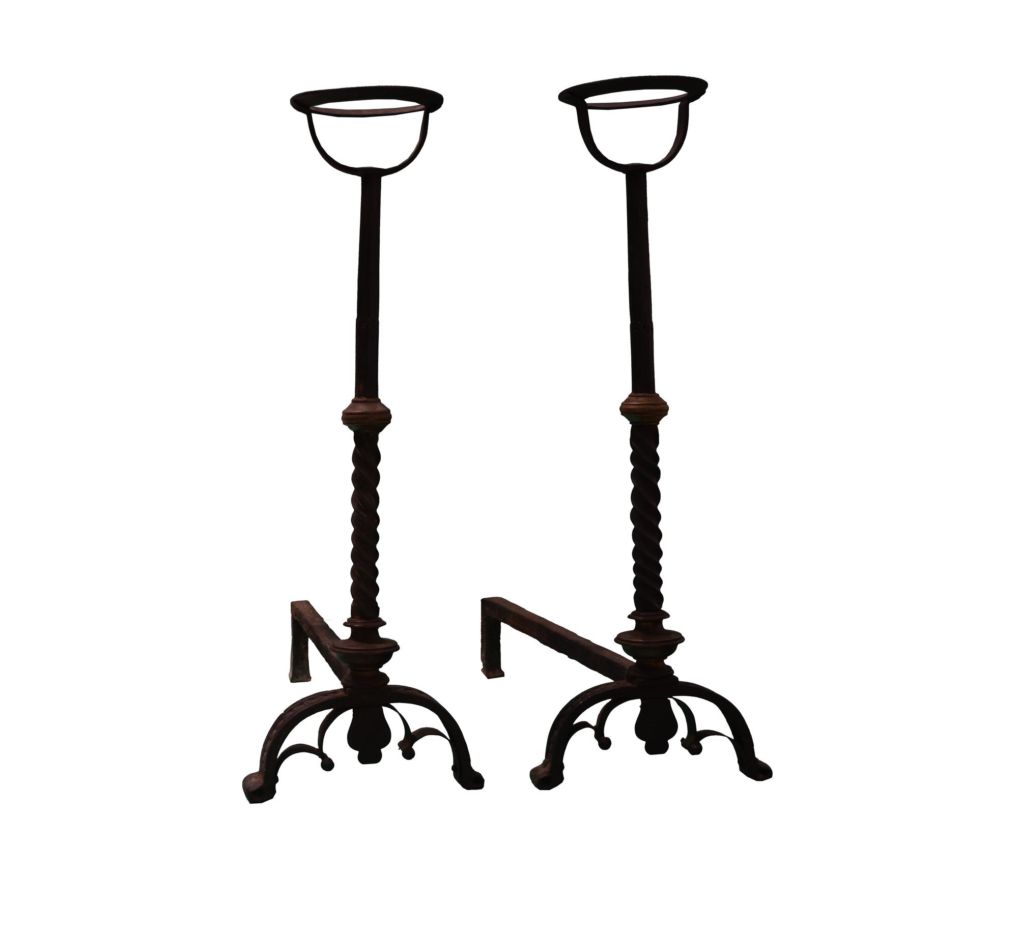 COPPIA DI ALARI DA CAMINO Coppia di alari in ferro forgiato Epoca XIX secolo...