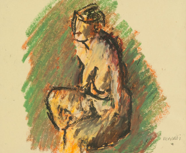 Ennio Morlotti Nudo, 1992 Pastelli policromi su carta, cm. 32,5x39 Firmato in basso a destra. Autentica dell'Artista su foto. Esposizione: Galleria Corchia, Forte dei Marmi, 4 - 20 Luglio, 1992, pubblicato sul catalogo della mostra "Ennio Morlotti, pastelli".