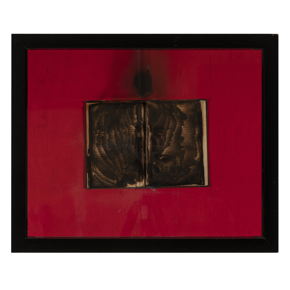 Book burnt on panel