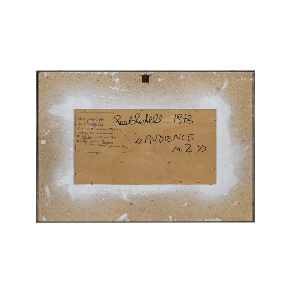 Datato 1973 e firmato sul retro, con iscrizione: Opera pubblicata su Bolaffi 1974-NAC n11 (novembre 1973) - Catalogo mostra mercato Basilea "ART 4" 1973 - Catalogo mostra Firenze "Fare pittura" (dicembre 1973)