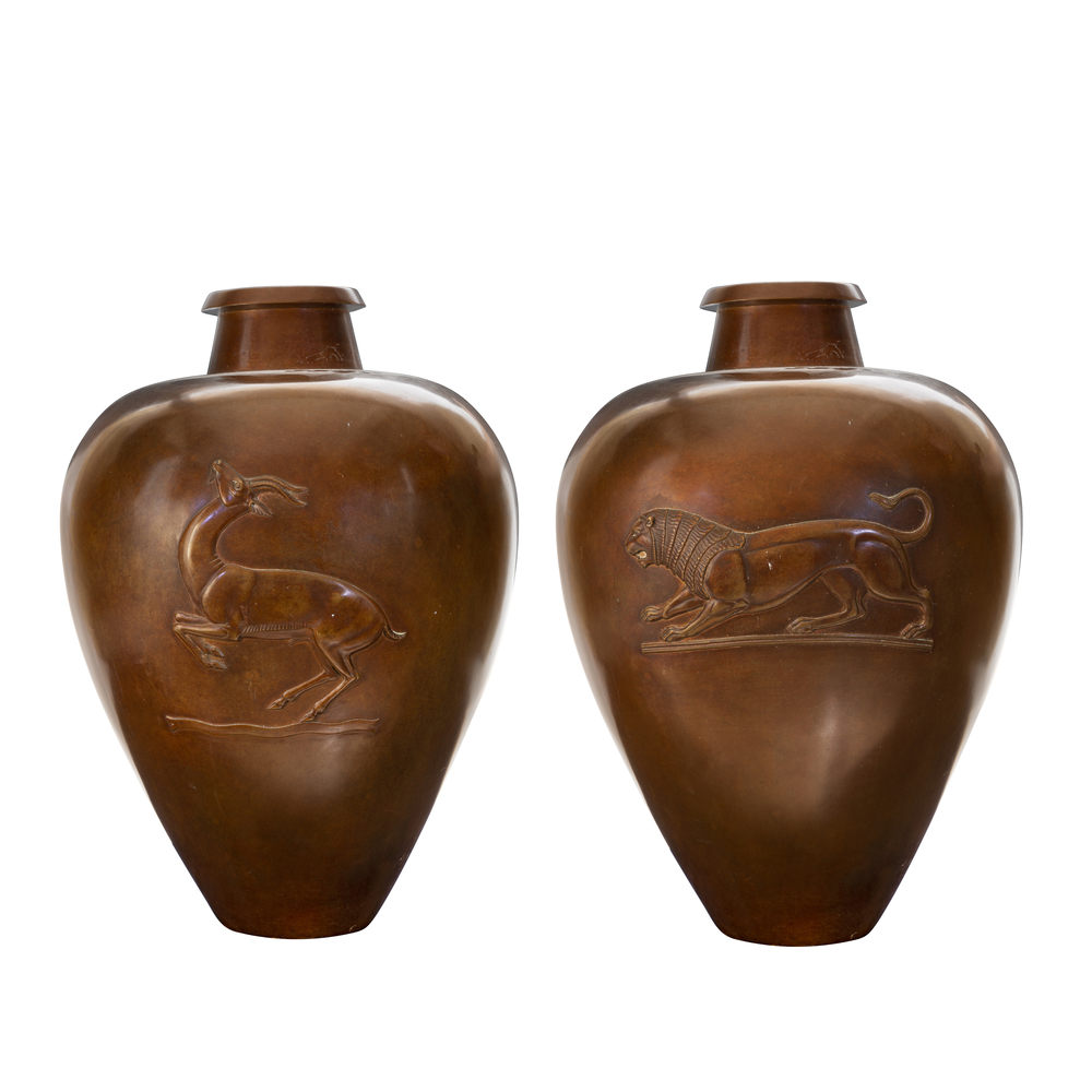 Decorati con figure di animali in rilievo e siglati LM sul fondo