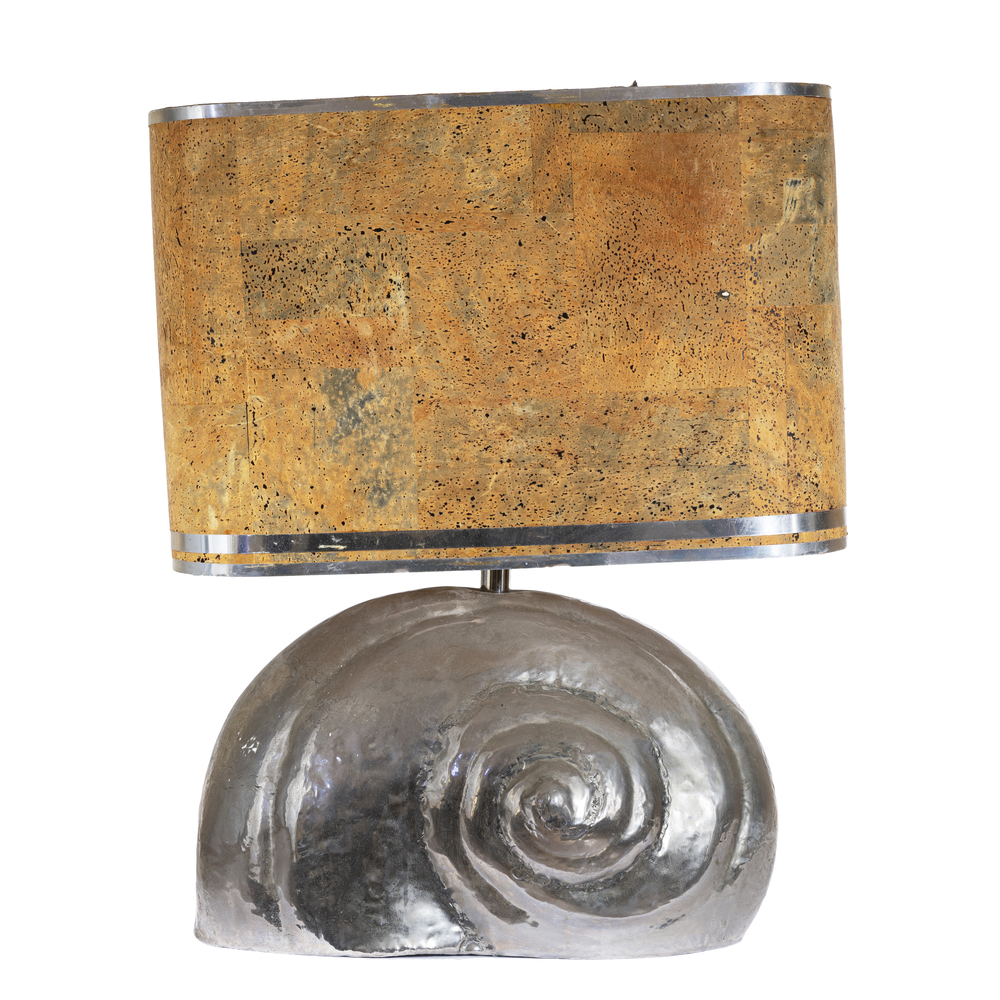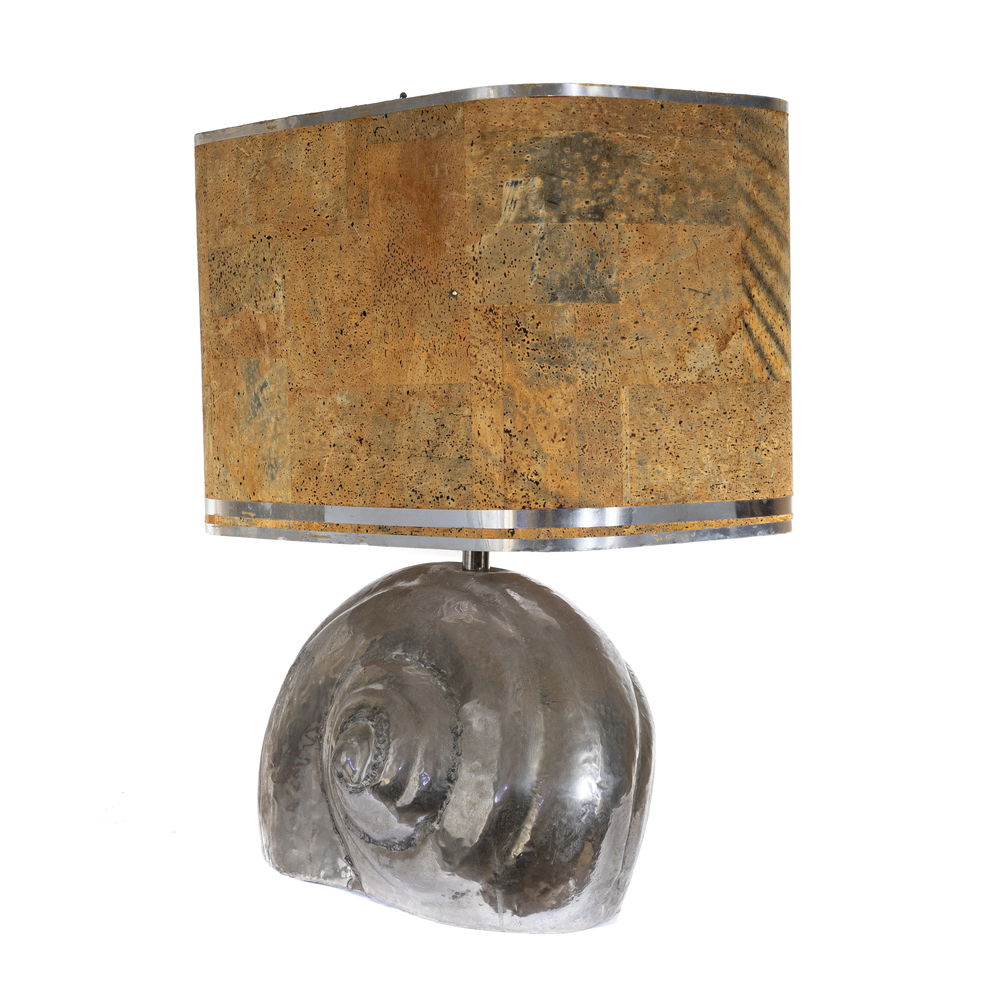 Lampada in metallo argentato a forma di conchiglia con diffusore in sughero