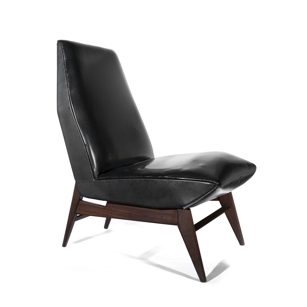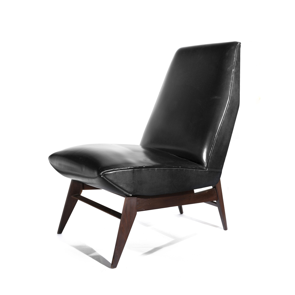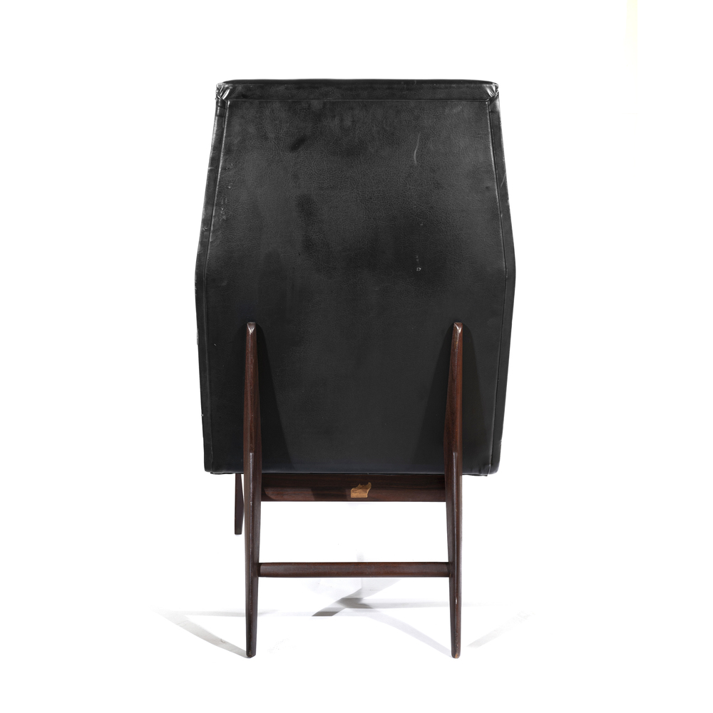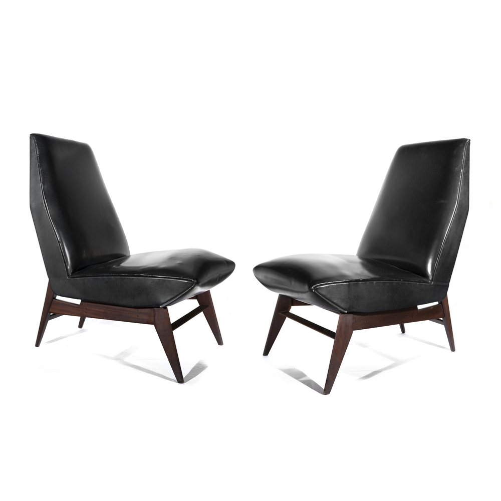 Coppia di poltrone imbottite, con struttura in legno e rivestimento in pelle sky