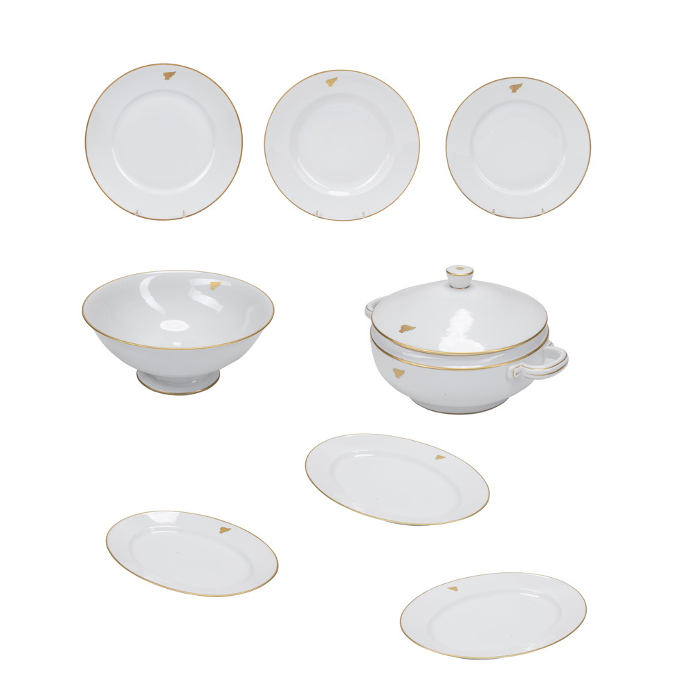 Consisting of 28 dinner plates, 6 soup plates, 6 dessert plates, 1 tureen with lid and 1 bowl