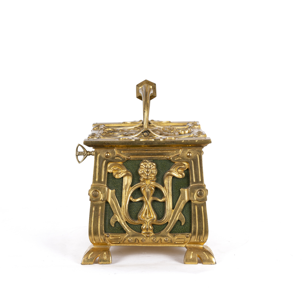 A jewelery box with gilded bronze applications
