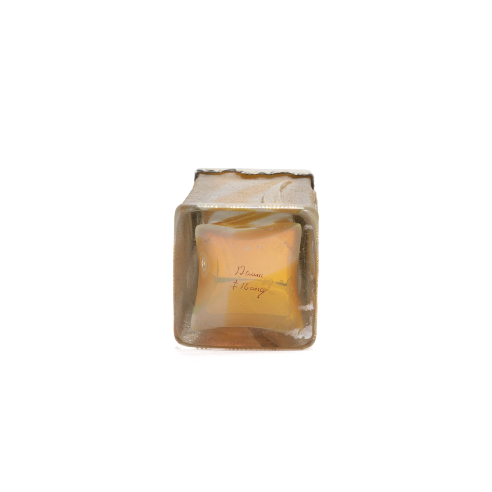 Glass vase with square base and silver applications on the upper edge