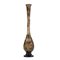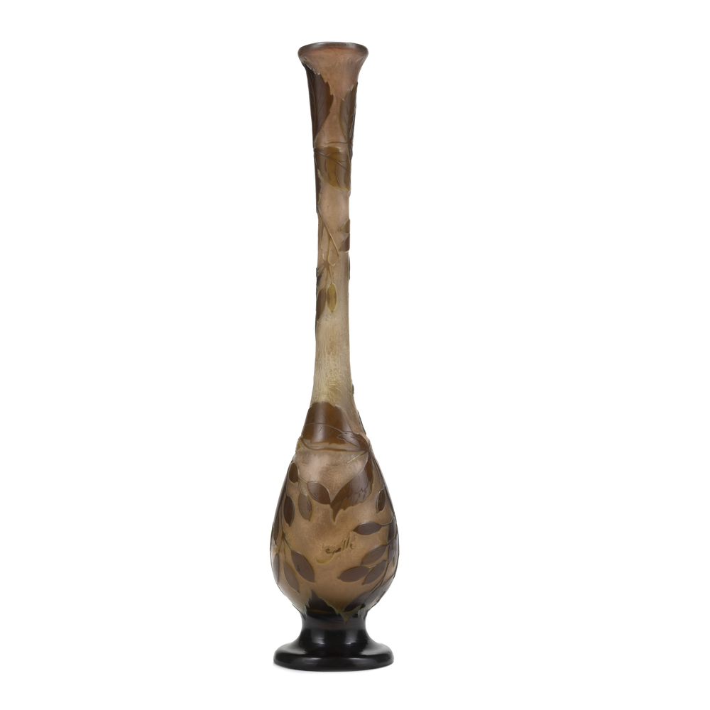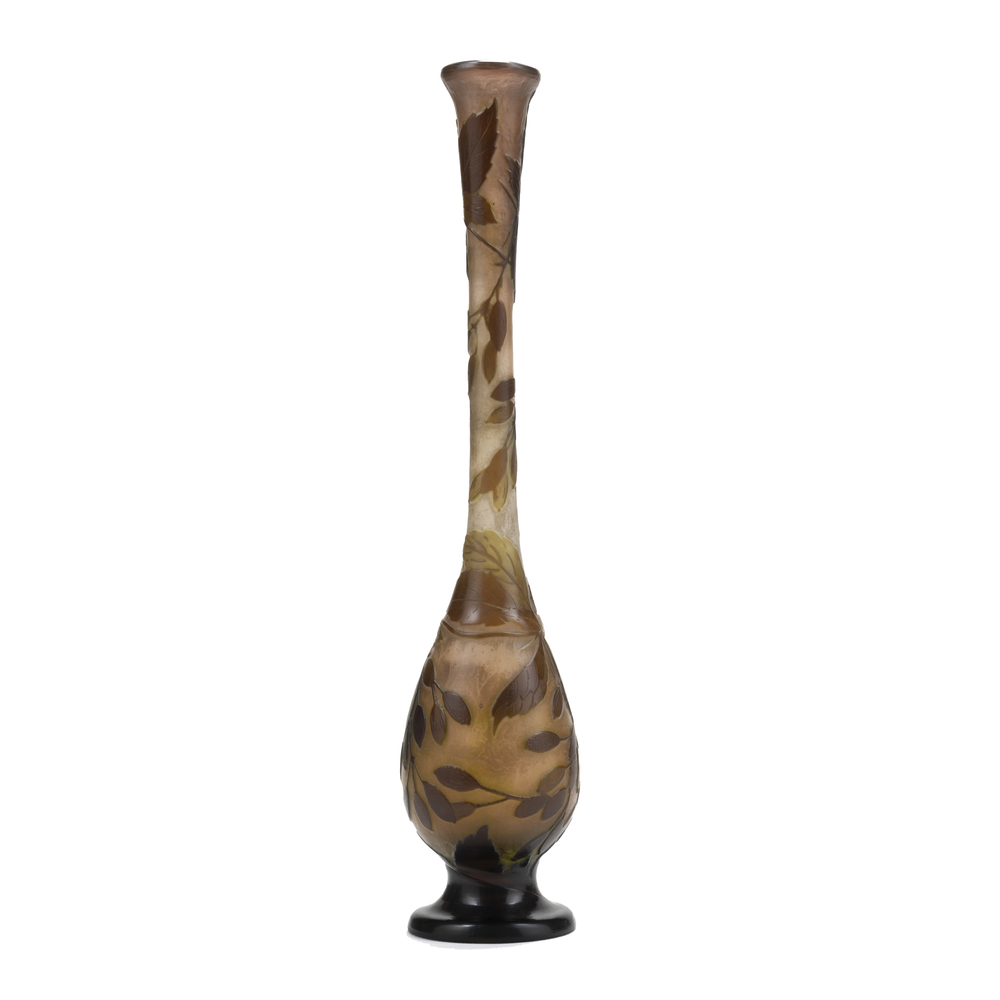 Vaso in vetro a bottiglia con decoro floreale , su base circolare