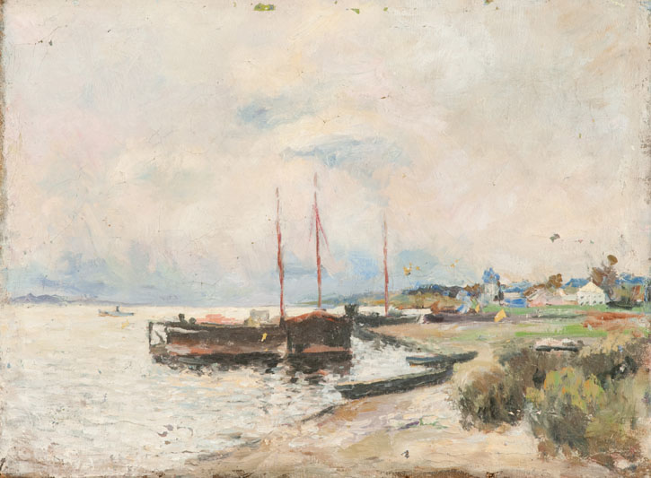 Lotto 849 | Anonimo Russo Marina Olio su tela, cm. 38x50,5. La tela presenta imperfezioni.