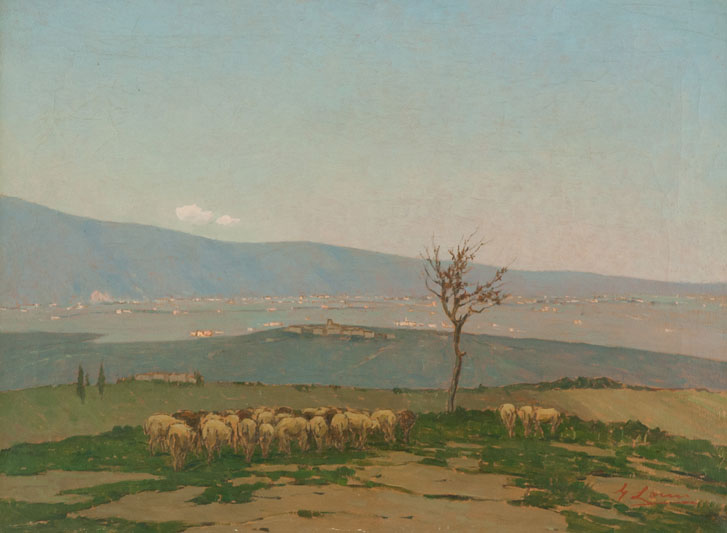 Giovanni Lomi Gregge Olio su tela, cm. 60x80 Craquelure sulla superficie pittorica. Firmato in basso a destra.