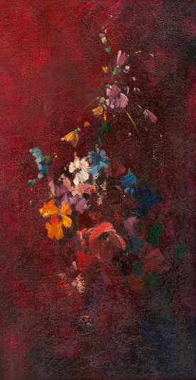 Giulio Da Vicchio Divertimento nel tema fiore Olio su tela, cm. 55x30 Firmato in basso a destra; Sul verso: firma e titolo; Scritto di Autenticità della figlia Alessandra Rontini.