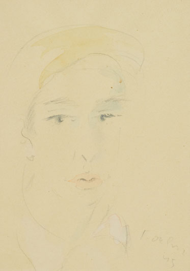 Filippo De Pisis Ritratto, 1945 Acquerello su carta, cm. 20x15 Firma e data in basso a destra. Autentica di Renato Cardazzo su foto con timbro "Galleria del Naviglio", Milano.