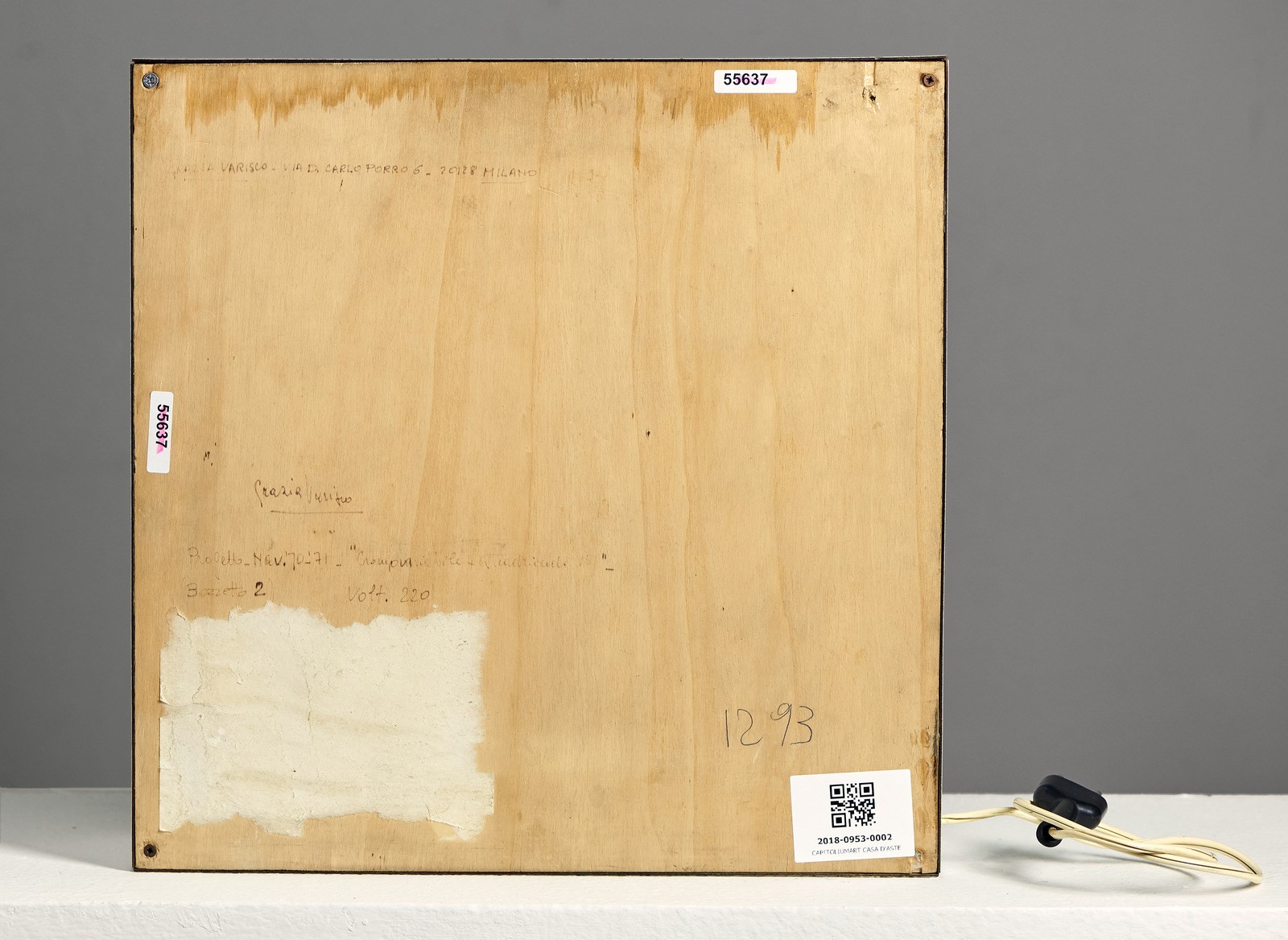 VARISCO GRAZIA (n. 1937) Progetto. Cromovariabile + Quadrianda 151. Tecnica mista e assemblaggio. Cm 36,00 x 36,00 x 10,50. Al retro titolo, firma e anno. 1970 -1971. Autentica dell'artista su fotografia.