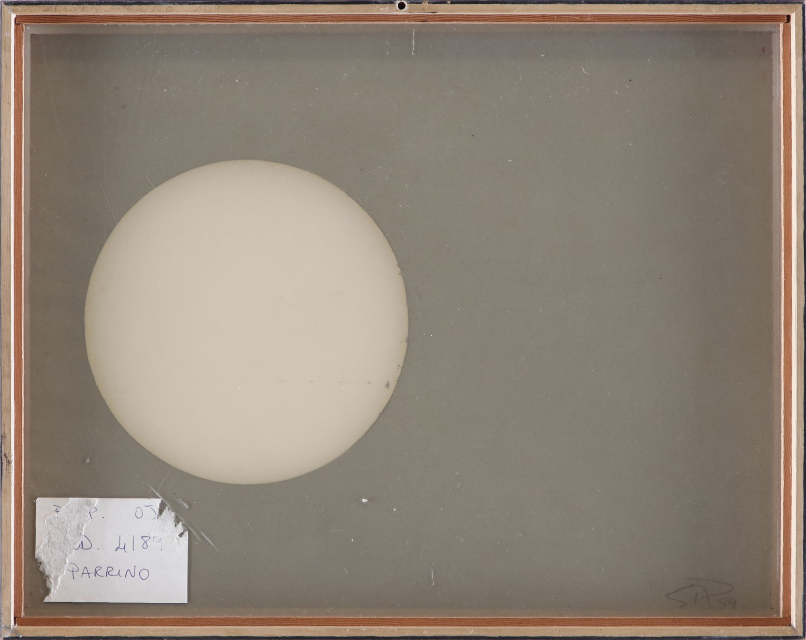 PARRINO STEVEN (1958 - 2004) Senza titolo. 1989. Tecnica mista su carta. Cm 27,50 x 35,50. Al retro firma e anno. Pubblicazione: Il Buco a cura di Achille Bonito Oliva e F.David Peat, Galleria Pio Monti, Roma, 21 Giugno- 21 Luglio 2006, pag.56. Esposizione: Galleria Pio Monti, 21 Giugno -21 Luglio 2006, Roma.