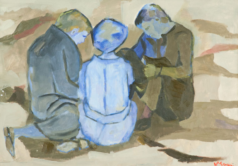 Renzo Grazzini Figure Olio su tavola, cm. 50x70 Firmato in basso a destra. Certificato di provenienza "Galleria Tornabuoni", su foto.